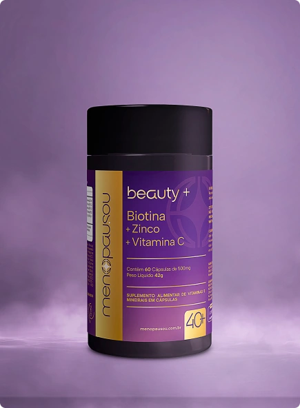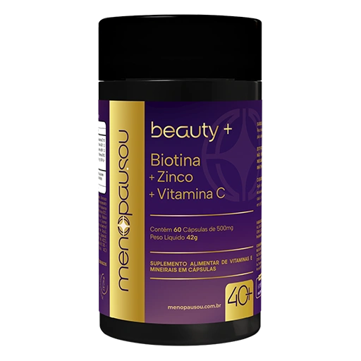 Criado para mulheres que sentem as mudanças no corpo refletirem no espelho, Menopausou Beauty+ foi formulado com nutrientes essenciais que fortalecem cabelo, pele e unhas durante a menopausa.