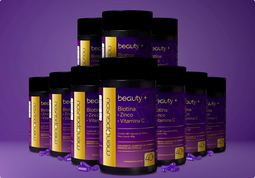 A menopausa muda o corpo, o cabelo, a pele e até a forma como a mulher se enxerga no espelho. O Menopausou Beauty+ nasceu para acolher essa fase e oferecer o suporte nutricional que o corpo feminino precisa para manter vitalidade, beleza e autoestima.