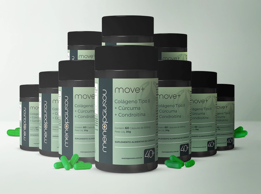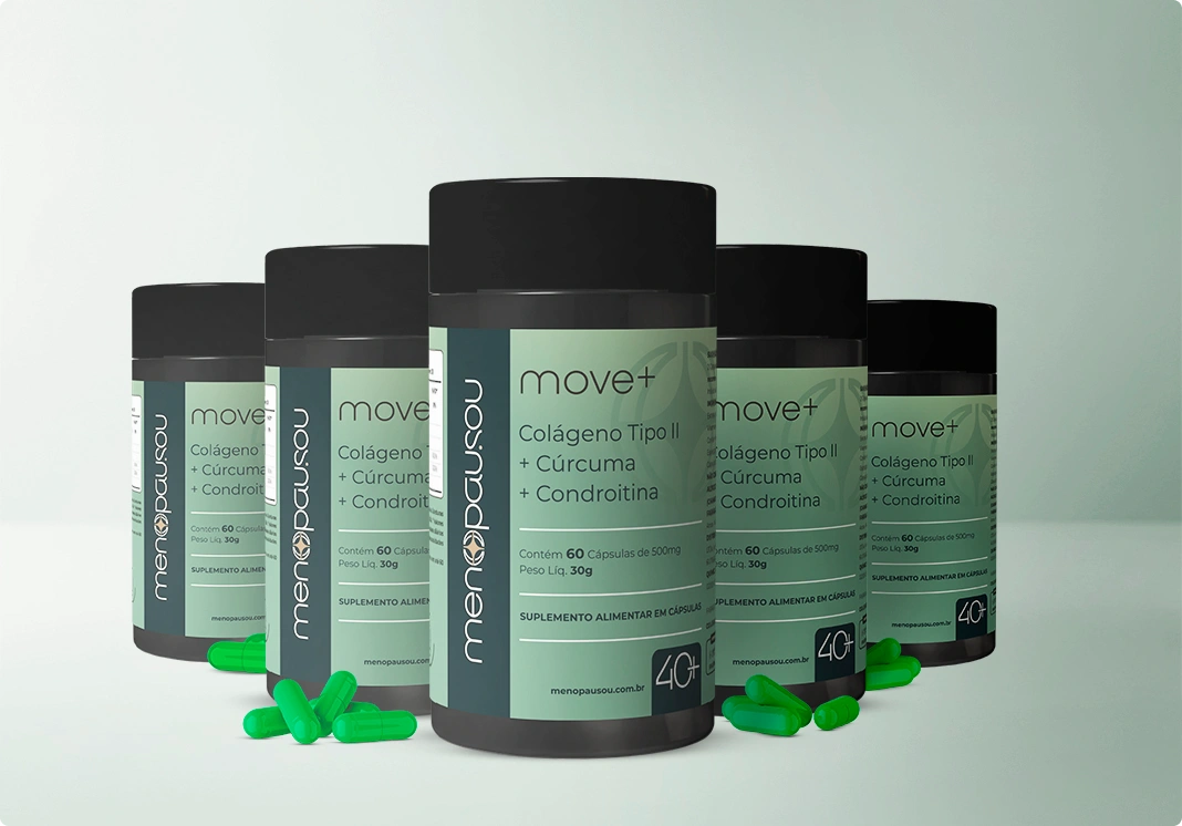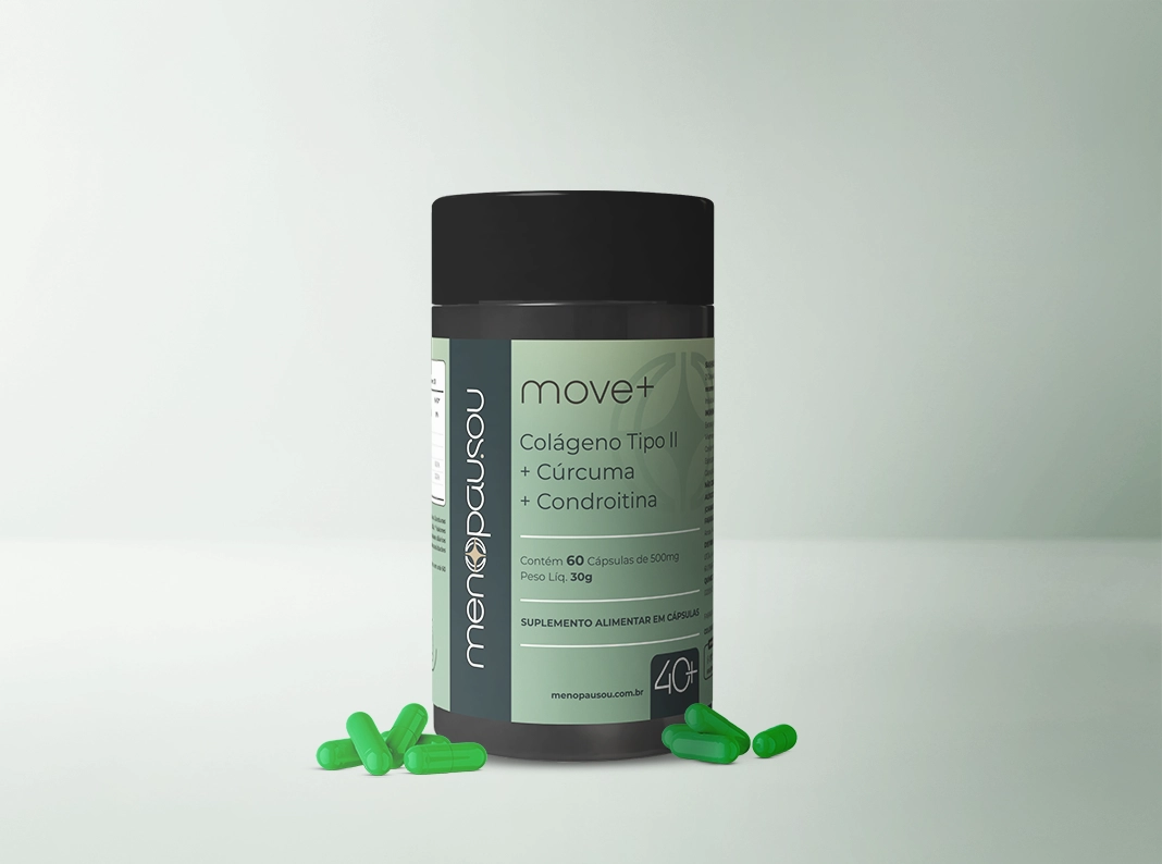 Menopausou Move+ foi desenvolvido para para devolver o conforto ao seu corpo e a liberdade de se movimentar sem incômodos. Sua formulação conta com poderosos anti-inflamatórios naturais, como a Cúrcuma, e ativos que agem diretamente na regeneração da cartilagem e fortalecimento das articulações, como Glucosamina e Condroitina.
